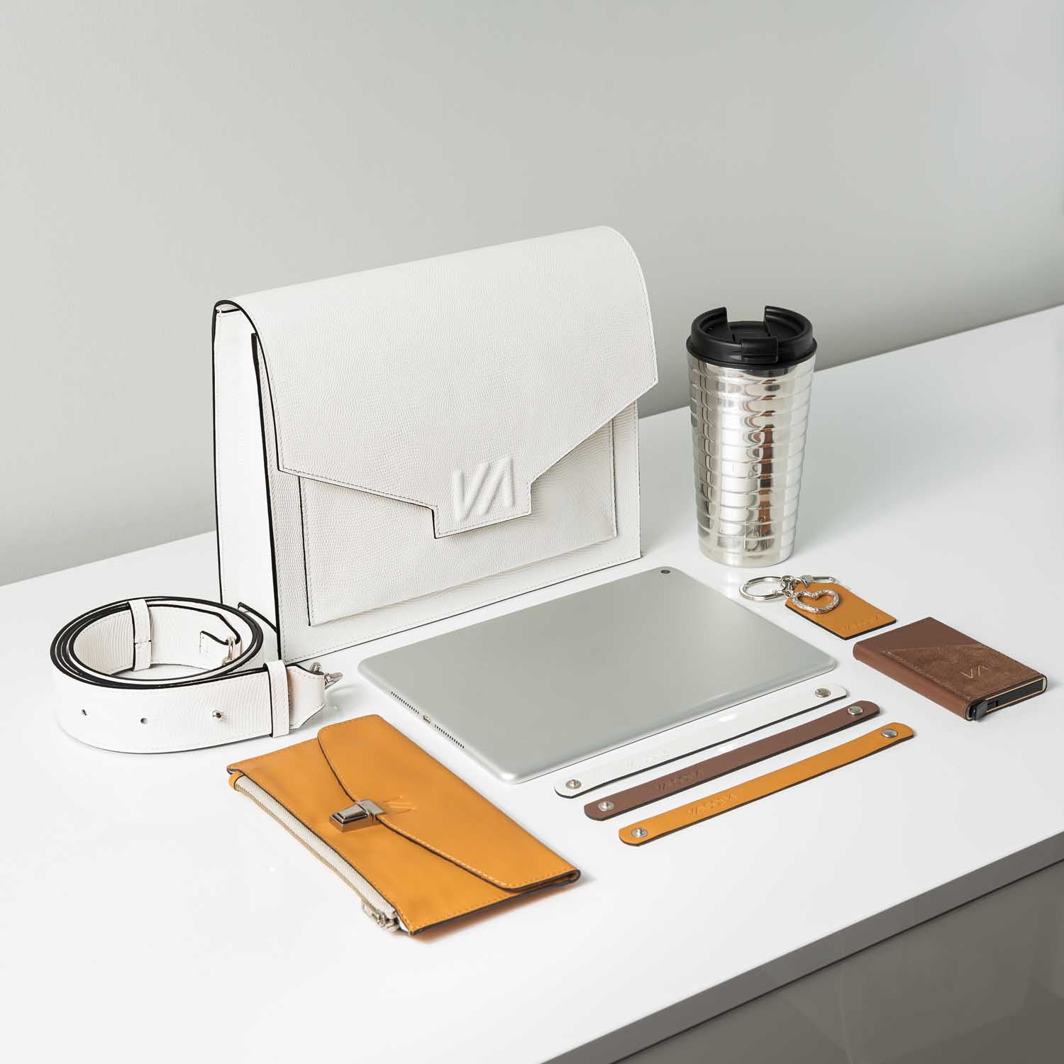 Az elengedhetetlen kiegészítő minden üzletasszony számára, aki folyton úton van. Kényelmesen elfér benne az iPad, A5-ös méretű jegyzettömb, összecsukható esernyő, fél literes kulacs, telefon, pénztárca, kis neszeszer. Elegáns külseje magasabb szintre emeli viselőjének megjelenését.